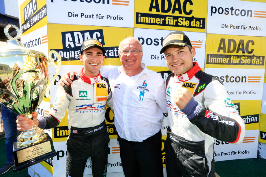 Mit einem fehlerfreien Rennen stellten Christopher Mies und Connor De Phillippi ihren Anspruch auf den Titelgewinn in der ‘Liga der Supersportwagen‘ nachdrücklich unter Beweis. Von Position drei aus kämpfte der Heiligenhauser in der ersten Rennhälfte mit den beiden führenden Porsche, musste aber einsehen, dass es zunächst keine Überholmöglichkeit gab. Daraufhin zeigte Christopher Mies große Rennintelligenz und schonte in Schlagdistanz zum Führungsduo die Reifen des ‘Montaplast by Land-Motorsport‘-Audi R8 mit der Nummer 29. Nach dem perfekt taktierten Boxenstopp konnte dann Connor De Phillippi den Druck auf die Führenden immer weiter erhöhen und eine knappe Viertelstunde vor Rennende, nach einem packenden Zweikampf und mit einem sehenswerten Überholmanöver schließlich die Führung übernehmen. Nach 39 Rennrunden brachte der Kalifornier den ersten Sieg seines Teams ‘Montaplast by Land-Motorsport‘ im ADAC GT Masters, seinen ersten persönlichen GT Masters-Erfolg und den ersten Sieg eines Audi R8 LMS in der Serie überhaupt, in trockene Tücher und das Team wieder zurück in den Meisterschaftskampf.